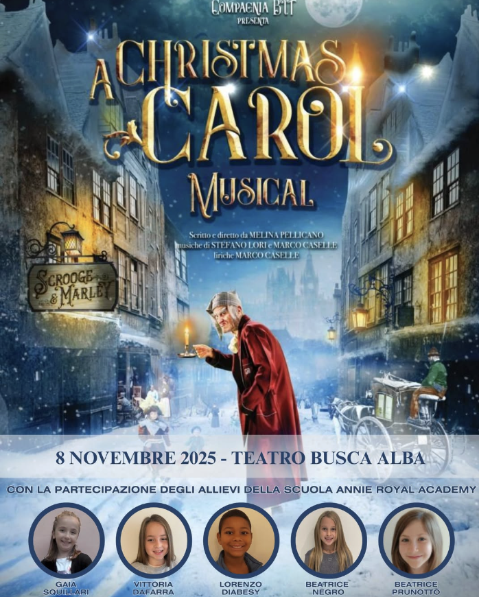 I nostri piccoli talenti nel magico musical di Natale “A Christmas Carol” in scena sabato 8 novembre al Teatro Busca di Alba alle ore 17.00. Un’ altra occasione per i nostri allievi di salire sul palco accanto a grandi artisti e vivere un’ esperienza da veri professionisti. Dal 2017